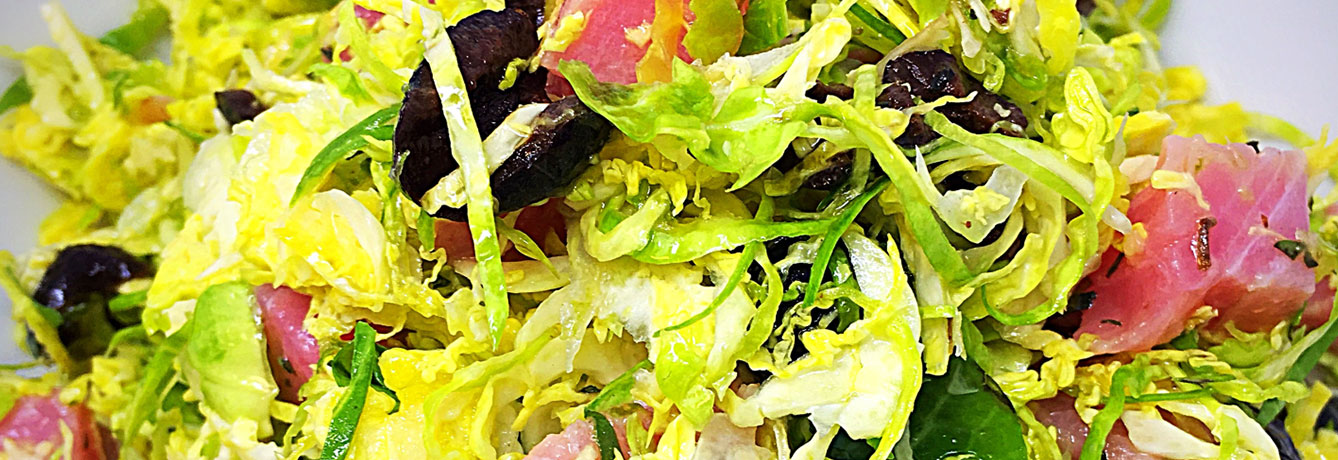 People typically think of boiling or roasting Brussels sprouts but they are also delicious when eaten raw. Just shred them, add some zesty lemon juice, a splash of extra virgin olive oil and some diced fresh tuna. That will surely turn your ordinary Brussels sprouts into a spectacular salad that everyone will enjoy.