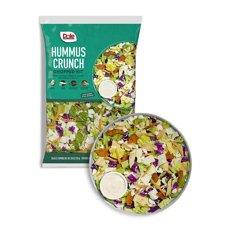 It’s a fresh take on your Favorite Mediterranean Dip. Our Hummus Crunch Salad takes hummus goodness the next level, blending creamy, lemony hummus-style dressing with chopped greens, crispy red bell peppers, tasty feta cheese, crunchy pita chips and savory tomato-basil seasoning. It’s everything you love about hummus - made even better.