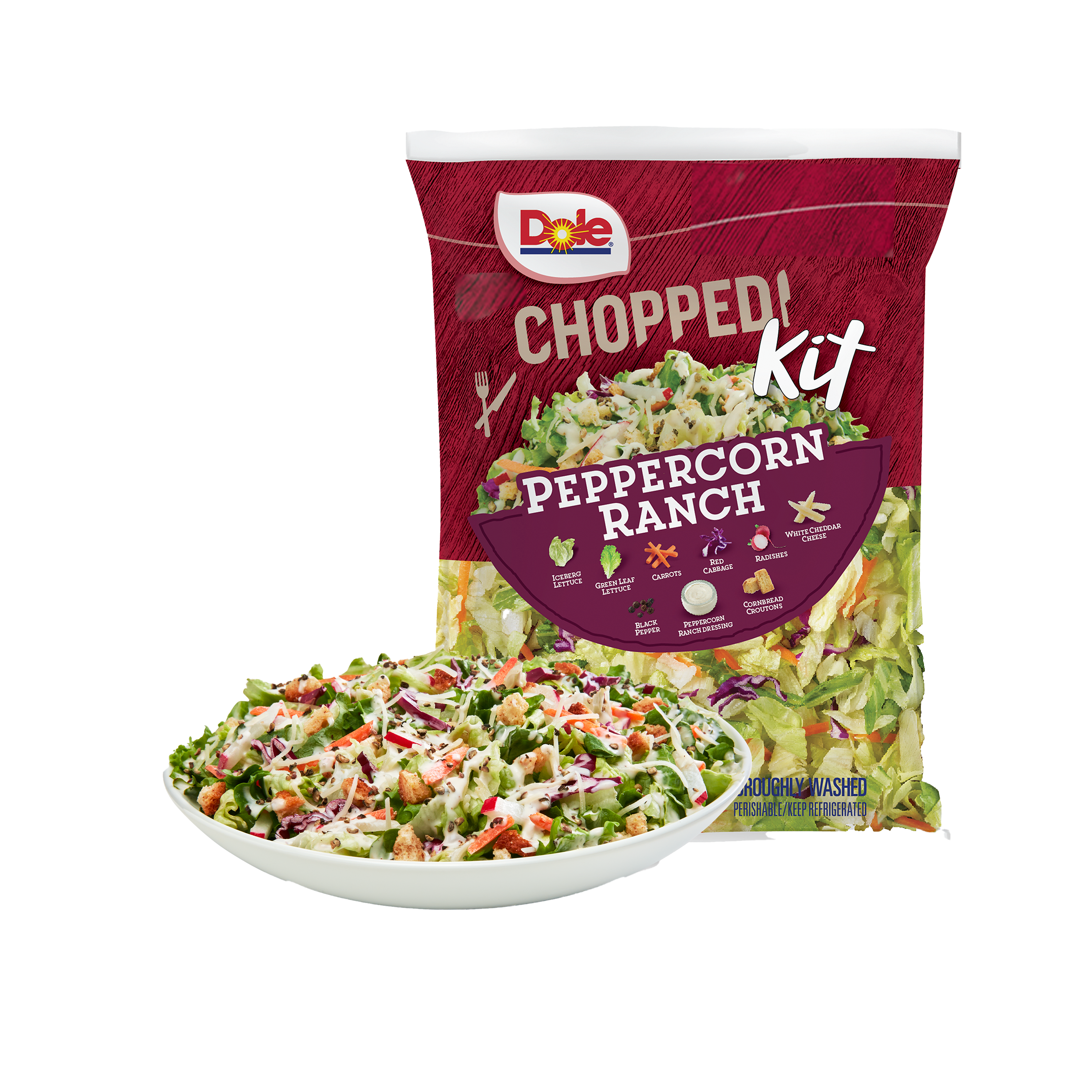 A mouth-watering experience with a combination of white cheddar cheese, cornbread croutons, black pepper, green leaf lettuce, iceberg lettuce, carrots, red cabbage, radishes and Dole’s Peppercorn Ranch Dressing.