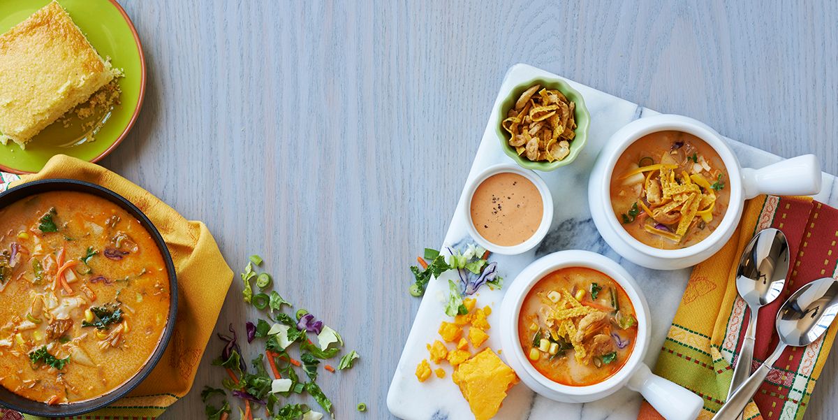 Chopped salads are distinctive in that they are almost always made with sturdy greens and veggies rather than the more tender and leafy varieties. Not only does this make these salads a more satisfying and toothsome eating experience, but it also means the ingredients can stand up to being cooked without losing all their texture and character. For this delicious and satisfying chowder, we use our DOLE® Chopped BBQ Ranch Salad Kit as the foundation for building a great soup. Almost all of the greens and veggies are pre-cut and washed, saving you prep time, and the BBQ Ranch Dressing provides an all-in-one flavor base. You even get the all-important crunchy toppings—crispy fried onions and cheddar tortilla strips. Serve this BBQ Corn and Potato Chowder with a warm square of fresh cornbread and a side salad of DOLE American Blend tossed with your favorite creamy dressing.