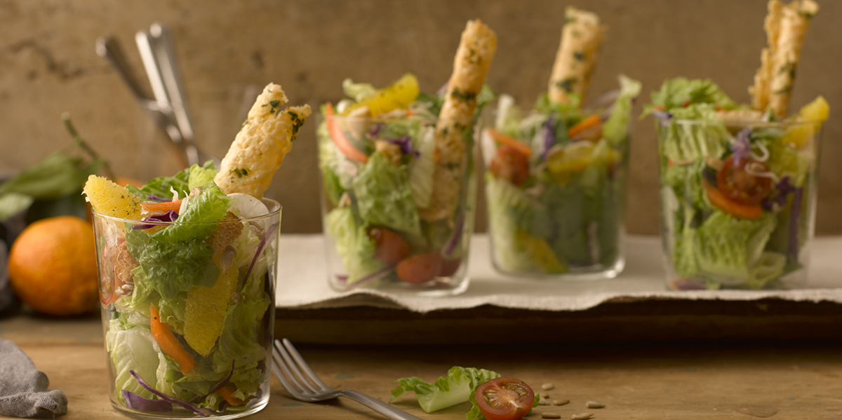 Cup Salads with Parmesan Straws