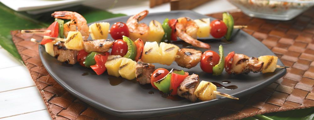 Grilled kabobs with a Teriyaki glaze that could work with chicken or shrimp.